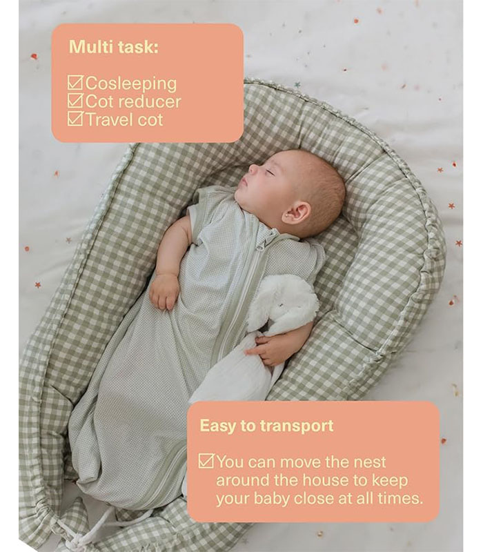 • Multifunctional Use: Ideal as a crib reducer, baby lounger, changing station, or travel pod.